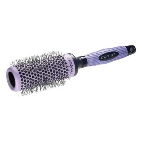 Comair profesional round brush ,,Purple Pink” 25mm – profesionalus cilindrinis šepetys plaukų formavimui fenu su jonizuotais nailoniniais dantukais. Keramikinis, ventiliuojamas šepečio korpusas greitai ir tolygiai paskirsto šiltą orą, reaguoja į fenavimo temperatūrą keisdamas spalvą, taip leisdamas parinkti optimaliausią fenavimo temperatūrą ir apsaugoti plaukus nuo išsausėjimo. Jonizuoti nailoniniai šereliai saugo plauko kutikulę nuo pažeidimų, įsielektrinimo, švelniai šukuoja plaukus, sulygina plauko paviršių. Šepečio rankena padengta neslystančia guma, šepetys lengvas, patogus intensyviam darbui, nevargina rankos. Šepečio cilindro diametras tinkamas fenuoti vidutinio ilgio ir ilgus plaukus. Katalogo numeris: 7000918