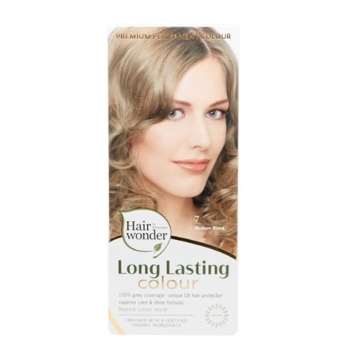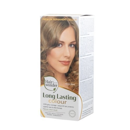 Ilgalaikiai plaukų dažai Hairwonder su 9 ekologiškais augaliniais ekstraktais, spalva vidutinė blondinė 7