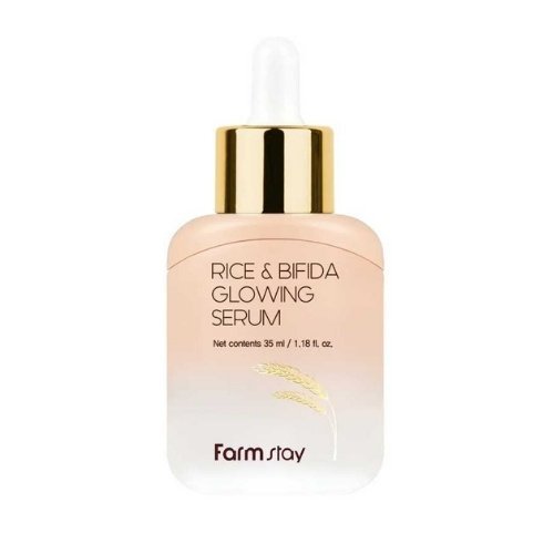 FarmStay Rice & Bifida Glowing Serum – lengvas, drėgmės pripildytas serumas, padedantis sumažinti tamsias dėmeles ir atkurti tolygų odos atspalvį. Formulė su ryžių ekstraktu, bifida fermentu ir niacinamidu šviesina, glotnina bei suteikia natūralų švytėjimą.